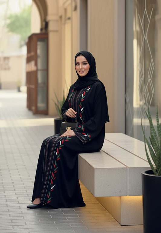 UAE National Colors Trim Abaya | Nida Fabric-803
