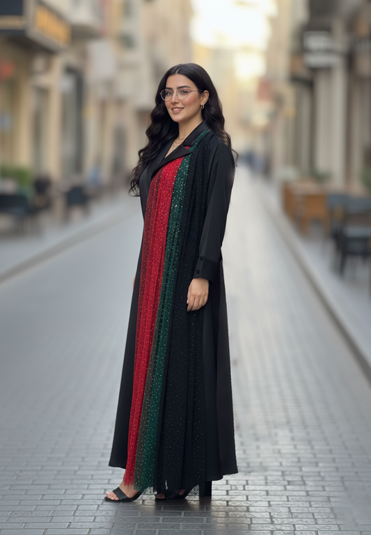 The Pleated UAE Flag Color Sparkle Contrast Abaya-786