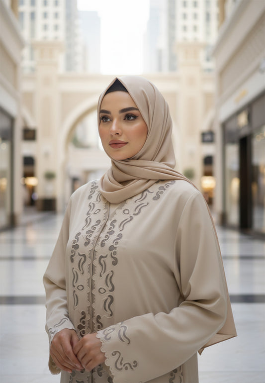Minimalist Beige Abaya with Flowing Line Embroidery | Nida Fabric-801